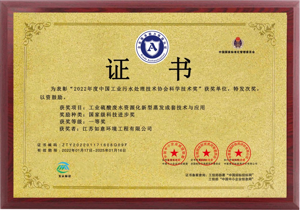 获奖项目:工业硫酸废水资源化新型蒸发成套技术与应用